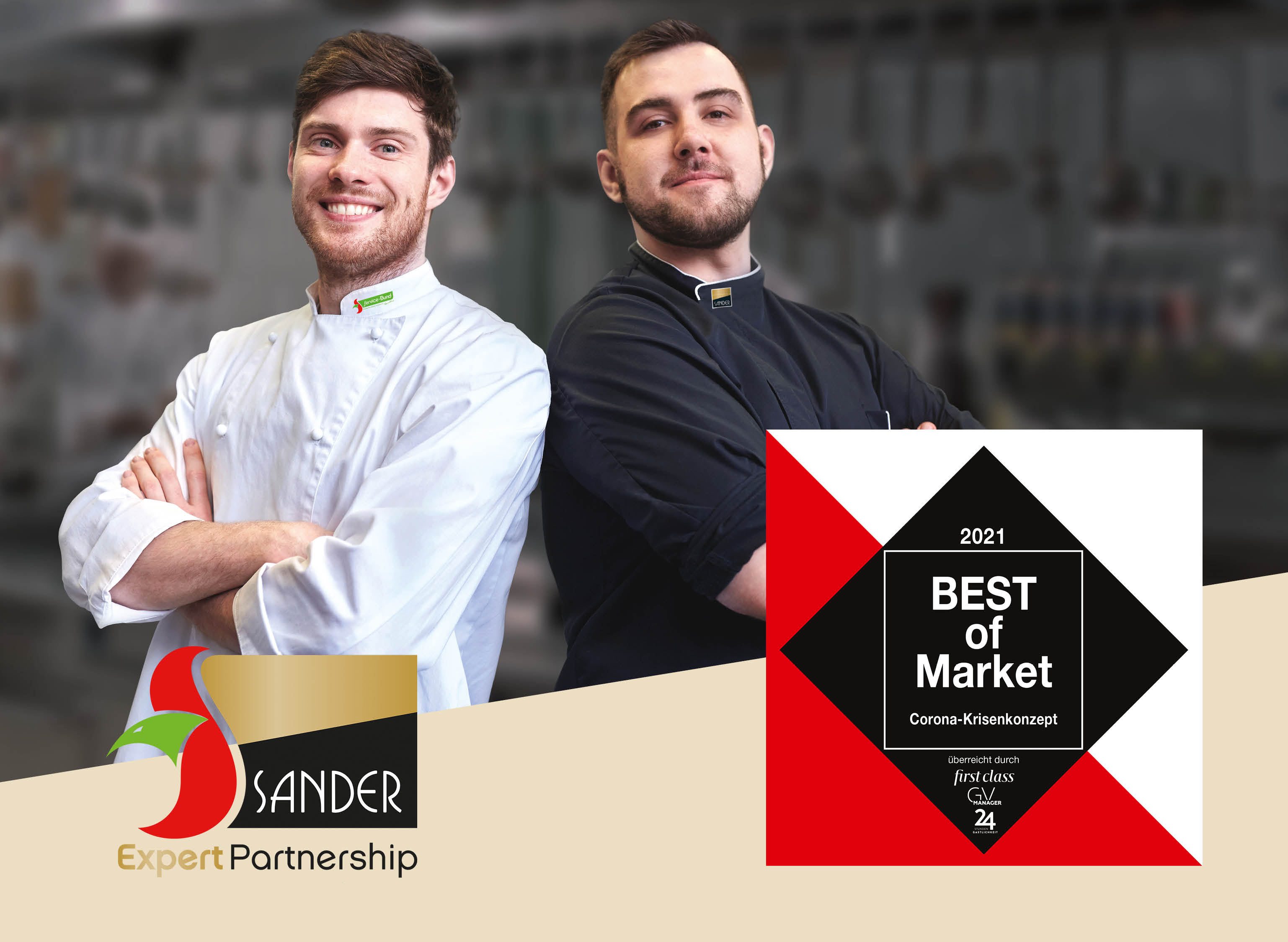 Wir sind stolz, dass unsere Kooperation mit dem Service-Bund den BEST of Market 2021 in der neusten und kundenrelevanten Kategorie „Corona-Krisenkonzept“ gewonnen hat. Hier konnten wir mit dem zu Beginn der Pandemie gemeinsam am Markt eingeführten #RestartGastro-Angebot „Flexible Konzepte mit verpackten Gerichten“ überzeugen.